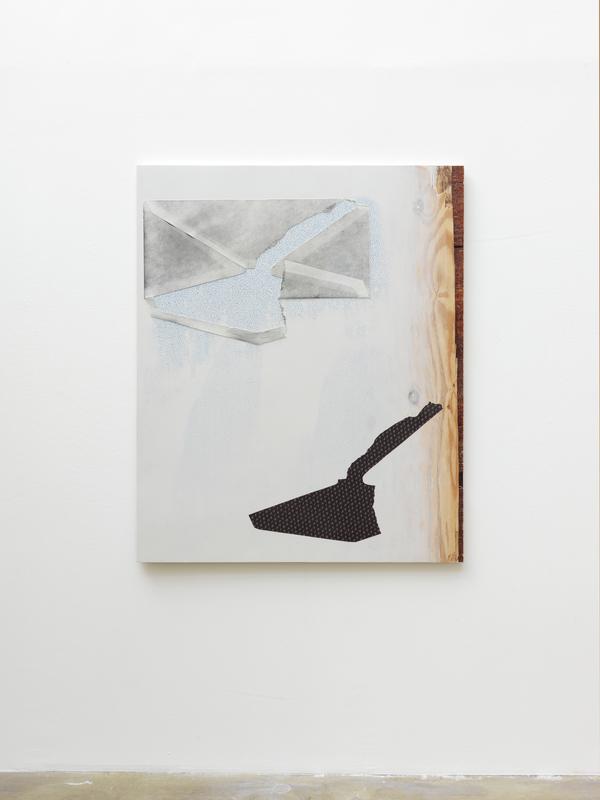 Un premier ensemble d’oeuvres sur contreplaqué recouvert d’un mélange de pâte polymère et de pigments puis sérigraphiées, créent des images en trompe-l’oeil d’enveloppes pliées. Le contreplaqué, le papier, l’enveloppe incarnent le paradoxe d’être des « dérivés du bois ». Elément fondamental de la nature, le bois est ici sujet à des transformations industrielles afin d’améliorer les rendements même des différentes strates de notre société moderne : le contreplaqué, matériau basique mais fondamental à la construction ; le papier, terrain vague de l’écriture ou de l’information imprimée ; et les enveloppes, contenants dissimulant l’information par le biais des circuits du capital et de la culture.