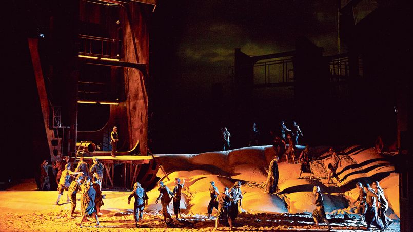 A Lyon, ce souffle est encore perceptible, mais il est comme attiédi. Alex Ollé, qui a dirigé cette mise en scène, n’a pu s’empêcher d’aller chercher une réalité contemporaine pour ancrer son Vaisseau. Il l’a trouvée, nous dit-il, dans le port de Chittagong, sinistre cimetière de bateaux du Bangladesh où des ouvriers misérables dépècent les carcasses dans un milieu hautement pollué. Pourquoi pas, mais qu’apporte vraiment une telle actualisation ? Essentiellement une idée scénographique plus amusante qu’émouvante : le navire rouillé, qui est tout à la fois celui de Daland et celui du Hollandais, est lentement démonté au cours du deuxième acte pour laisser la place à une simple carcasse d’où surgiront les spectres. On se surprend à suivre avec intérêt le lent manège des ouvriers, en oubliant un peu la ballade que chante au même moment Senta à l’avant-scène. Lorsqu’un décalage se produit ainsi entre la partition et la mise en scène, on peut douter de sa pertinence. Heureusement, l’accord est pleinement retrouvé au troisième acte, où la Fura dels Baus déploie toute sa virtuosité dans le mouvement virevoltant des groupes, soutenu par les lumières d’Urs Schönebaum, la vidéo de Franc Aleu, et servi par des chœurs de l’Opéra de Lyon remarquables d’énergie et d’engagement. Les spectres qui envahissent peu à peu le plateau composent alors une image saisissante.