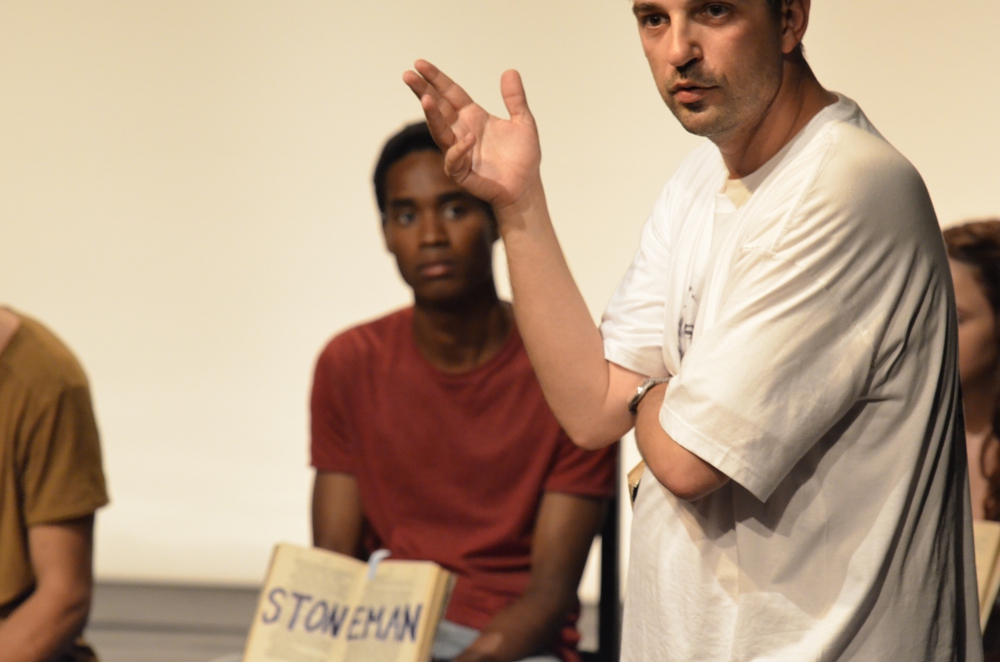 Ce théâtre du langage propose une communication de cœur à cœur. Dans la spirale des textes qu’il récite nait une émotion qui passe de son corps à ses lèvres, puis aux lèvres et au corps des dix personnes courageuses venues sur scène, arrivant enfin aux lèvres tremblantes et au corps tendu du spectateur assis dans la salle. Sans affectation particulière, la spectacle créé un climat intimiste où parole et écoute se répondent avec bonheur.