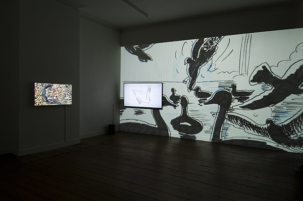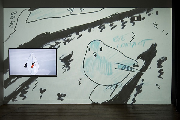 -The first element shows the structure of the animation in progress, which will be completed in two years time. An animatic video, (an animated storyboard) comprising of 188 drawings by the artists, follows the final outcome exactly: in time, in action, in framing, and points of view.
