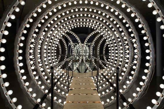 A special installation of the iconic work Y (2003); a split passageway encircled by a seemingly infinite halo of white light bulbs, is presented in the Upper Belvedere. Remaining stationary, the structure appears to be spinning in a clockwise or counterclockwise direction, depending on the direction of the light sequence, and draws viewers into it. Höller created this work in 2003 for Dreams and Conflicts. Delays and Revolution shown in the Italian Pavilion at the Venice Biennale.