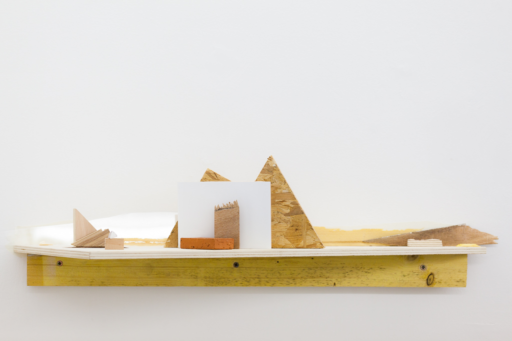 L’artiste connaît bien le réel, il le travaille et le modélise, en le reproduisant par la photographie, en l’agrandissant et en le modifiant par la géométrie, en cassant sa Palissade #2 ou encore en installant un Paravent #3. Il s’est tant cogné à ce réel que des fragments de matières se sont décroché dans l’espace. Pierre-Yves Hélou décide alors de les rassembler à différentes échelles en inversant les repères visuels habituels. Il manipule cette matière brute tel un origamiste et devient ainsi créateur d’espaces uniques. C’est dans cet univers pragmatique que de nouveaux horizons se fabriquent et apparaissent dans la galerie.