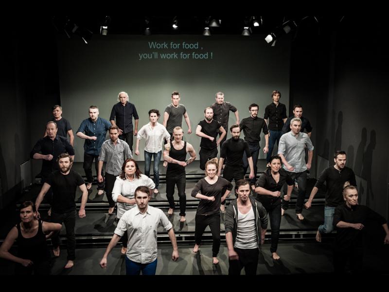 Cherchant à travailler les systèmes et les idéologies à partir de la figure de l’homme-robot, la metteure en scène polonaise fait ici référence à l’époque de la Grande Dépression ainsi qu’à l’occupation soviétique de son pays. Elle démonte la machinerie humaine à travers les mécanismes du chœur. Voulant créer « un Requiem pour le monde des gens sans emploi et pour ceux qui travaillent au-delà de leurs forces », elle donne à la voix une force subversive.