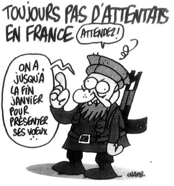 Ce prisme de la pensée pure, de la pensée seine, de la pensée du droit chemin, il est large : il va de celle sous un voile plus opaque que sa voisine à celle qui manifpourtoussera plus que sa collègue de bureau. « Toujours pas d’attentats en France / Attendez, on a jusqu’à la fin janvier pour présenter ses vœux » disait le dernier dessin de Charb. Lui qui préférait mourir debout que vivre à genoux aura été entendu. Qui c’est si ce n’est pas même ce dessin qui a déclenché le début des hostilités ? Debout parmi ses frères plutôt qu’accroupi et pépère, Charb aura fait des choix clairs, exigeants, définitifs.