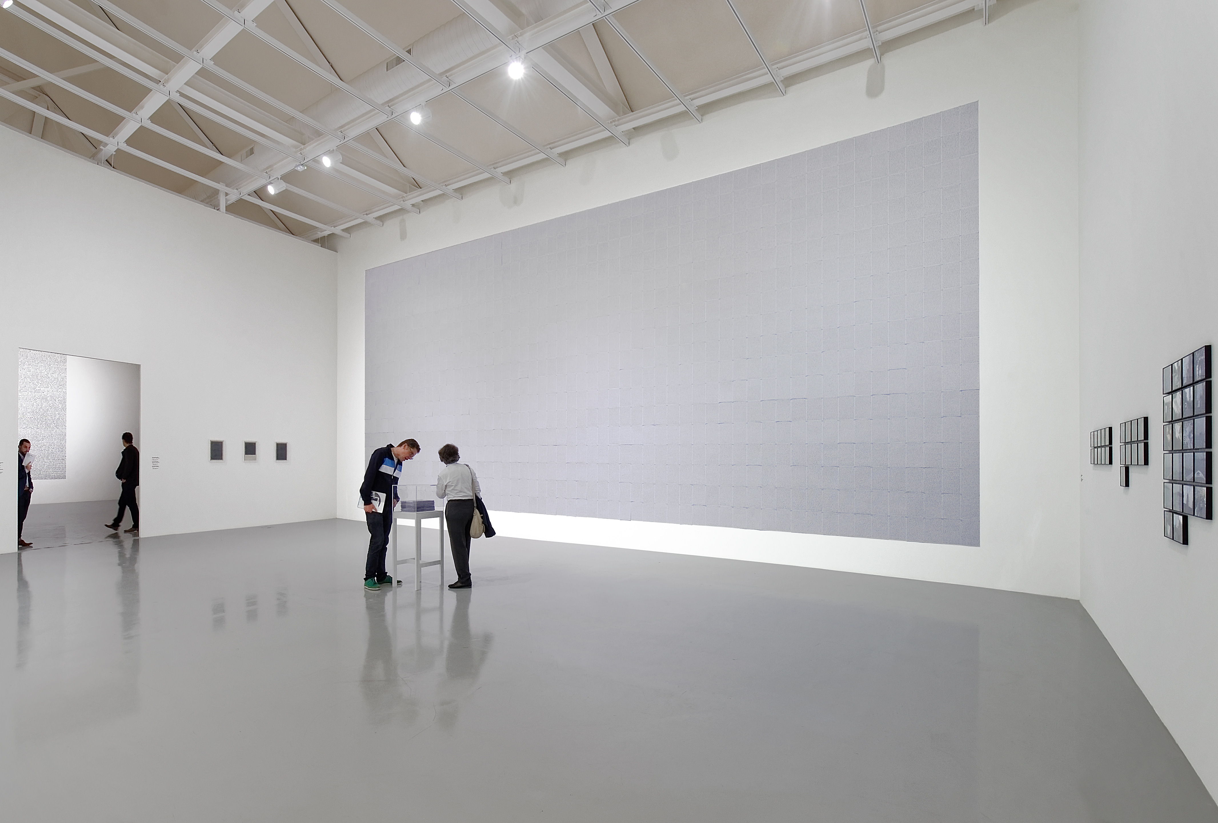 Prenant des récits de voyage, des romans initiatiques ou biographiques (Hans Henny Jahnn, Marcel Proust…) pour matière première à une réécriture multiple, Jean-Christophe Norman les recopie d’abord à l’identique sur des feuilles au format A4 qui sont ici présentées sous vitrine. L’ensemble constitue un bloc sculptural matriciel non accessible à la pulsion totalisante du regard. Ces mêmes récits se déplient partiellement sur les murs de l’espace d’exposition dans des qualités plastiques qui initient de nouveaux régimes de lecture, entre visibilité et lisibilité.