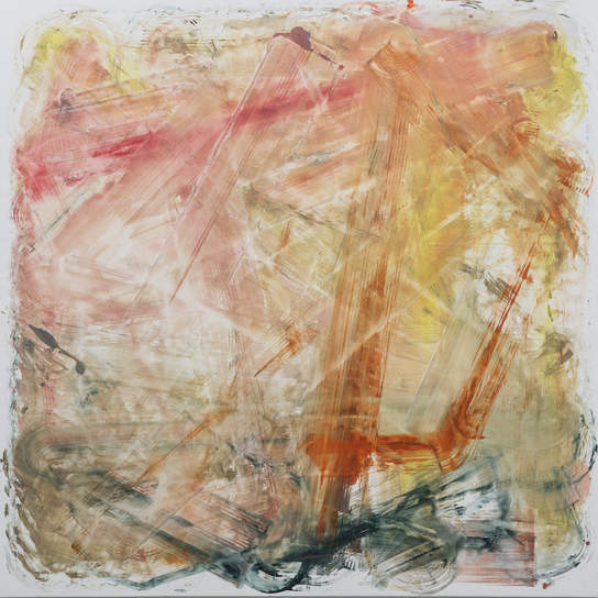 ‘Am I cleaning a large room or a small room?‘ asks the iRobot Scooba 450. Later works by JMW Turner (Snow Storm, Rough Sea with Wreckage, Seascape with Storm Coming On, etc.) are found and lost in the spinning brush and lubricating/sucking action of a floor-scrubbing robot. Using Mouse’s Back, Smoked Trout, Blazer and other colors selected from Farrow & Ball’s menu of ‘estate emulsions’ (now readily available in Berlin), Spaulings channels the senile-visionary late late Turner in the robot’s drone-like way of attacking the canvas like any bathroom floor. A weather report in paint, a flood warning transmitting as interior décor, distributing estate emulsions according to the 450’s internal algorithm.