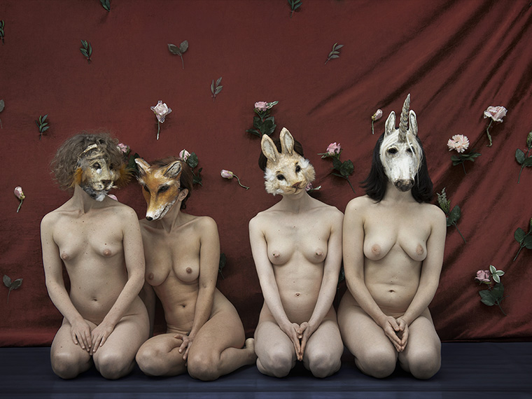 Après avoir habillé de mille fleurs le rideau qui sert de repoussoir à leur aventure, l’une d’entre elles devient la Dame, une autre la Licorne, les deux autres le lapin, le renard ou le lion. Les tableaux s’enchaînent avec une précision respectueuse pour nous laisser nous imprégner de cette fable allégorique dont le support originel est aujourd’hui conservé au Musée de Cluny.