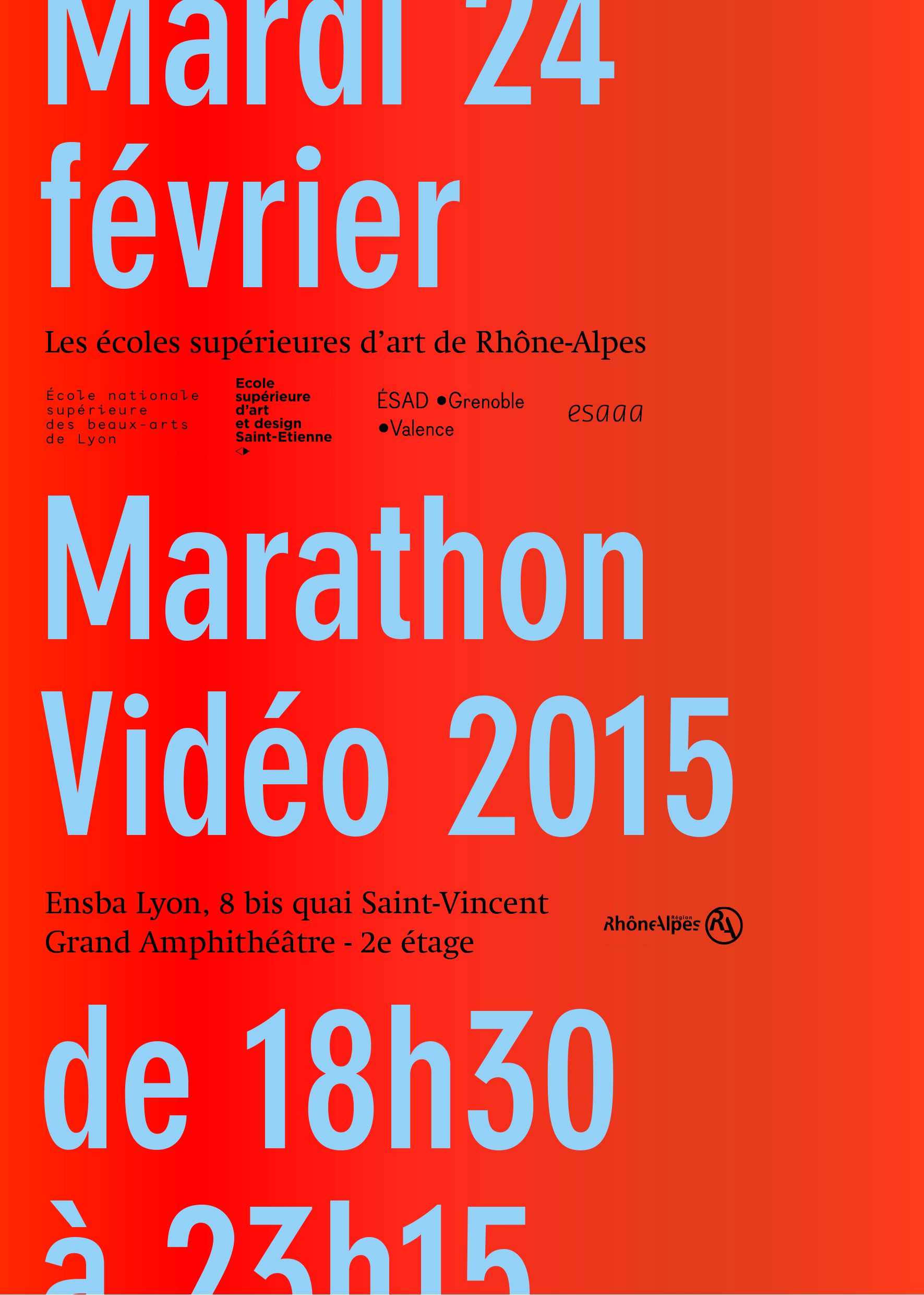 L’Ensba Lyon accueille l’édition 2015 du Marathon Vidéo qui rassemble depuis plusieurs années les étudiants et enseignants des écoles d’art d’Annecy, Grenoble-Valence, Lyon et Saint Etienne.