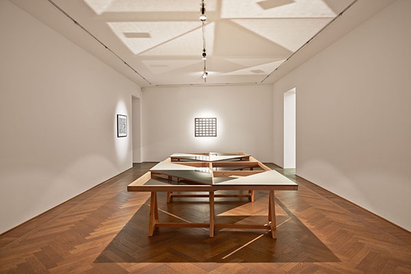 “Patterns for (Re)cognition” is the largest exhibition to date, and the first exhibition in Switzerland, by the Belgian artist Vincent Meessen, who will represent Belgium at the upcoming Venice Biennale. Meessen’s often collaborative and rigorously research-based practice includes investigations into gaps in the writing of history, particularly colonial histories. At Kunsthalle Basel, the artist presents several new modular sculptures; a series of 16-millimeter films based on found film fragments; a new sound piece; borrowed early-19th-century ritual objects originating from the Kuba Kingdom; and a series of folded paper works. All of these serve as a visual and conceptual backdrop for a selection of 1930s paintings by the little-known Congolese painter Thela Tendu.