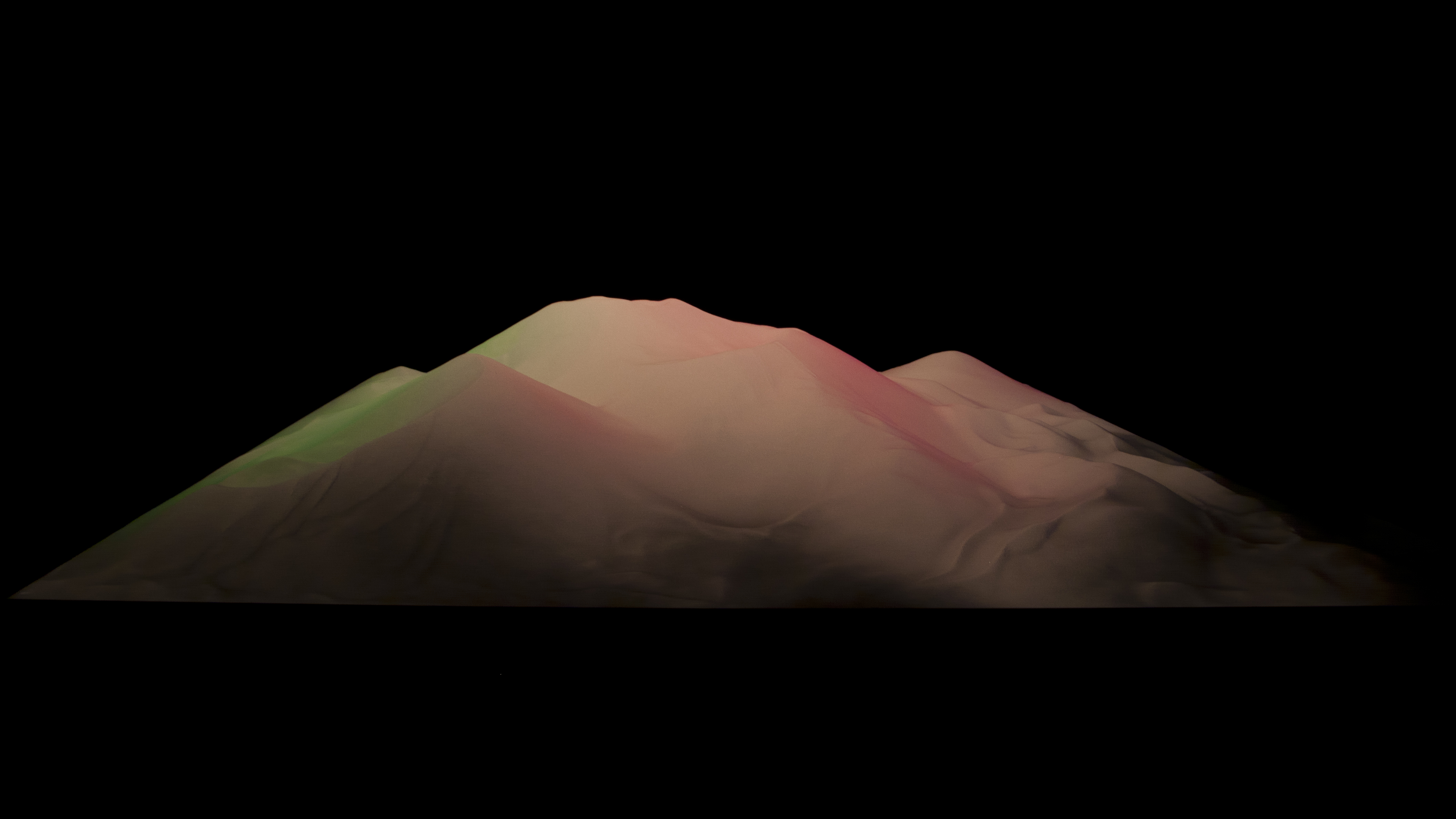 Les cartes sont donc des alternatives à la réalité. Pourtant, elles s’y rapportent avec acuité. L’expérience individuelle et subjective peut être soulignée, quand bien même il s’agit de retranscrire une réalité commune. Pauline Delwaulle nous introduit par exemple à des cartographies imaginaires par une vidéo, l’Île, dont la poétique méditative nous invite à l’exploration d’une géographie inhabitée. Les reliefs escarpés et les panoramas nuageux fusionnent avec les tracés topologiques ; nous voilà invités à un parcours où seuls bruissent la faune locale et les éléments climatiques. Ici la cartographie semble avant tout décrire une expérience, l’exposition d’ailleurs s’affranchit de la littéralité des cartes géographiques traditionnelles pour proposer des cartographies parallèles, à l’image des masses fluides de Jiratchaya Pripwai, des sphères aquarellées de Marie Velardi, des amoncellements stratigraphiques de Yoan Béliard en passant par la sculpture de sable de Théodore Fivel, dont les teintes polychromes évoquent des paysages science-fictionnels.