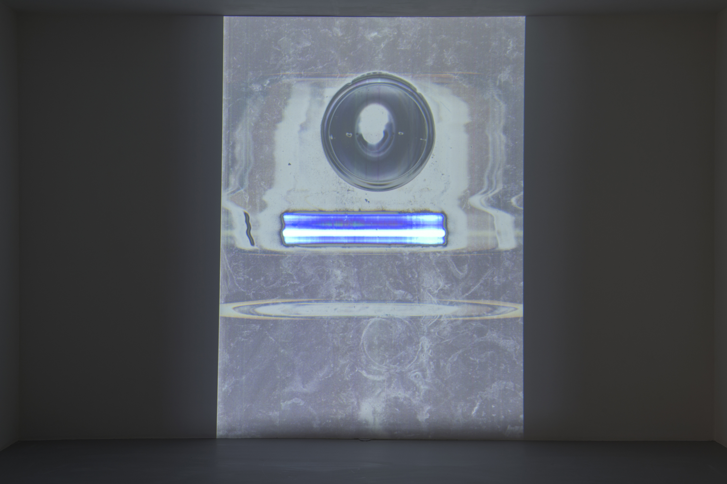 Dans les trois expositions, chaque vidéo peut être regardée comme une source lumineuse à la manière même d’un véritable matériau sculptural. De plus, dans un lien toujours fort à la sculpture, à Paris et à Düsseldorf, de l’icône néo-classique célèbre d’un probable David, l’on glisse à la juxtaposition, sur une image fluide principale, de cellules ou de traces hétérogènes qui forment comme des icônes statiques et abstraites, se déplaçant autour et dans le cadre. Trisha Donnelly travaille ici à former des icônes de choses non-identifiées avec des corps qui sont incompatibles entre eux et ne se mélangent pas. Et dans chacune des trois expositions, l’icône, tant celle de la sculpture de David que celle de ces corps étrangers, crée des atmosphères différentes, à Londres, jouissance et illuminations lumineuses, à Paris, angoisse, cycle, et contraste caustique des éléments, à Düsseldorf, visions autour du vivant, de l’artificiel et du terrestre.