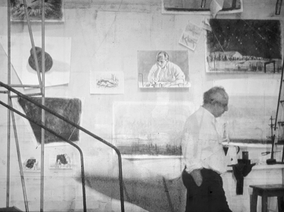 Le film, commence ! William Kentridge est assis sur un fauteuil d’osier. Dans ses mains, il tient un livre pendant que défilent des pages noircies par des regards. Il s’est détourné un temps de la lune pour rejoindre un environnement fait essentiellement de livres, cafés, grandes feuilles de papier crayonnées attachées aux murs. Puis (à travers) la petite tasse de café blanche portée minutieusement jusqu’à la hauteur de son œil droit, il épie à même son bureau un défilé de fourmis entassées. Elles se déroulent de long en large à hauteur d’une cafetière italienne. Le tableau blanc devient noir d’un plan à l’autre et les fourmis se colorient en fonction des visions de l’artiste.