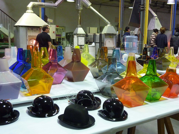 Elle y conçoit des formes qui mettent autant à profit la virtuosité de leur savoir-faire que l’accident, laissant place à une déclinaison de couleurs et de textures. Des analogies se créent d’une manufacture à une autre, depuis l’atelier de production jusqu’au centre d’art, où, tout en transparence, les oeuvres font écho à l’architecture vitrée du bâtiment industriel.