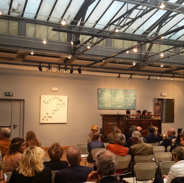 Après Christie’s fin Avril, Sotheby’s clôt la saison de l’art contemporain italien à Milan hier avec un total de 19,6 millions d’euros, soit 350 mille euro de moins que Christie’s. Sur le sol italien, le record est donc de Christie’s (de peu) pour un ensemble d’artistes orthodoxe et encore très focalisé sur les «modernes classiques» de l’après-guerre avec Fontana en tête de liste et ses successeurs comme Scheggi (top lot de Sotheby’s à 1,3 million), Edoarda Maino surnommée Dadamaino, Bonalumi, et Castellani, bien représentés, comme également les sculptures d’Arnaldo Pomodoro. Petite variante pour Sotheby’s qui inaugure timidement le centenaire de Burri avec quelques Cretti et une Combustion petit format qui se sont bien vendus mais sans précipitation. À noter que, contrairement à Fontana, Burri, maître finalement consacré de l’Informel italien, est encore présenté sans successeurs.