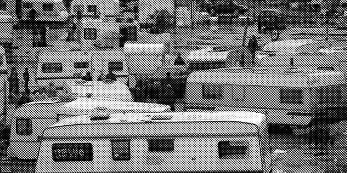A l’occasion de son exposition personnelle, Héctor Zamora investit la grande salle du Frac en y installant 17 caravanes, autant qu’il était possible d’en mettre tout en respectant les normes de sécurité.