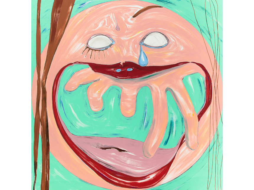 Dans Self-portrait : Single Tear 2015, la « tête » parfaitement ronde de l’artiste flotte sur la toile, sans lien avec ses cheveux raides tombant à la verticale. Dans sa bouche ouverte apparaissent des doigts à la place des dents. D’un de ses yeux vides mais pleins de vie, une larme est sur le point de couler.