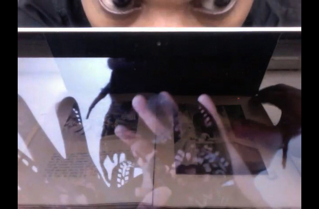 « Un monde où les choses sont liées ». dans l’hésitation d’une parole qui avance prudemment, on sent très bien chez l’artiste la volonté de ne pas se tromper dans la formulation d’une storyline fragile, à l’heure où l’on exige tacitement des jeunes artistes qu’ils présentent, dès la sortie d’une école d’art, une œuvre très identifiable (au risque de se fabriquer ce que Winnicott nomme un « faux self »), les premiers éléments d’une carrière scénarisée. Et « fragile », c’est bien le mot qui, je crois, caractérise le mieux cette exposition : pris isolément, les propositions sculpturales, vidéographiques, filmiques peuvent sembler un peu faibles (ou, précisément, « fragiles »), en dessous de l’ambition qu’affiche le titre, et l’ensemble constitue un décor dans lequel on aimerait voir des corps se mouvoir, entendre des voix résonner. Et de fait, le soir du vernissage étaient présents des performers (des étudiants de l’Ecole Supérieure d’Arts et Médias) déambulant, faisant sonner, si je puis dire, des extraits de poèmes ; très prochainement aura lieu une conférence-performance de Julien Creuzet et Eva Barois De Caevel : c’est très probablement dans ces moments de présence théâtrale et de parole vive que l’exposition a cessé et cessera d’être fragile, et trouvera sa force.