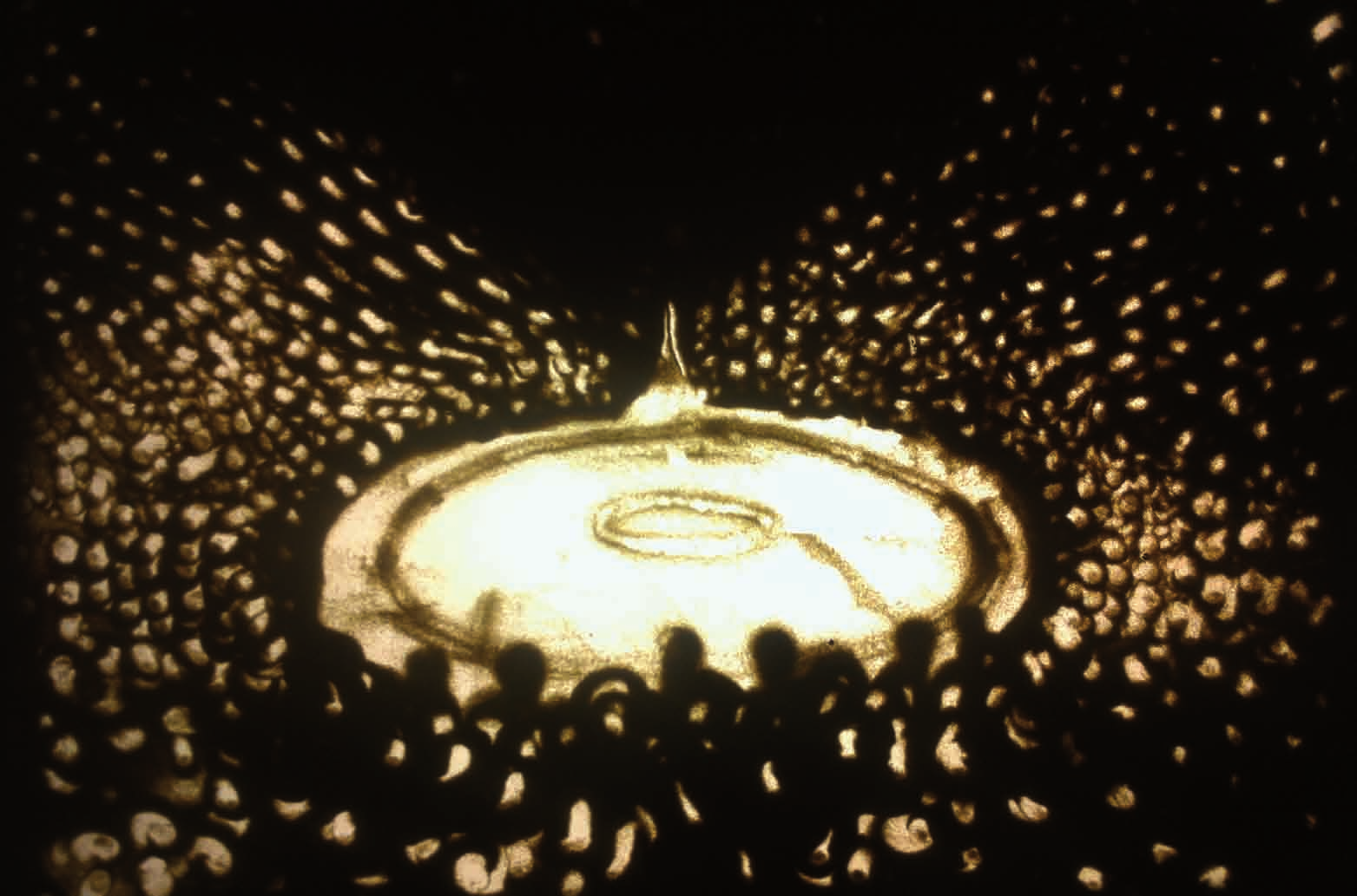 Tout ici relève de la magie… D’abord, cette « fabrication à nu ». Époustouflant d’assister aux gestes des deux complices qui, tels des Prométhée (mais la modestie en plus), s’affairent derrière leur pupitre artisanal éclairé par un simple spot pour, au pinceau et à l’encre de Chine, donner vie aux personnages lorsque ceux-ci ne sont pas des silhouettes prédécoupées qui en ombres chinoises défilent au rythme de la machinerie d’une sorte d’orgue de Barbarie actionnée par leurs soins. Des jets de sable sur le papier dessinent l’espace de la piste ou suggèrent encore les reliefs d’un paysage dans lequel gambade un cheval fougueux… bientôt entouré d’un enclos qui pieu à pieu s’élève du sol… pour qu’un simple coup de gomme vienne ensuite effacer les barrières qui le retenaient prisonnier et lui redonne la liberté en le délivrant du lasso du dompteur.