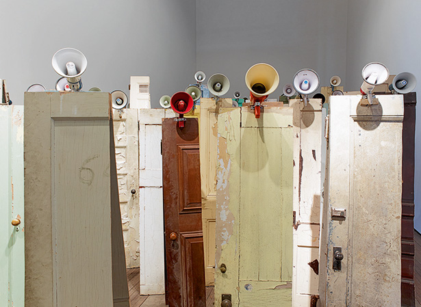 Visuels : 1- Kader Attia, Asesinos ! Asesinos!, 2014. Installation, 134 doors and 47 megaphones. Courtesy the artist and Lehmann Maupin. Photo: Elisabeth Bernstein / 2- Kader Attia, Oil and Sugar, 2007 Vidéo, couleur, avec son, 4min.30 – Institute of Contemporary Art/Boston, don de James et Audrey Foster / 3- Kader Attia au milieu de Culture, Another Nature Repaired – Photo DR.