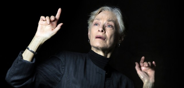 La seconde partie est très émouvante puisque le film fait apparaître en majesté le corps de Lucinda Childs elle même dansant sa pièce et sur scène un dialogue avec la danseuse Caitlin Scranton qui reprend aujourd’hui le rôle. Tout l’intérêt de la reprise de la pièce est là. Comment refaire des gestes, reproduire une danse si abstraite tout en gardant la magie du geste originel ? La danseuse s’y emploie. Elle est en grave concurrence avec la créatrice qui, de plus, ce soir là est en dans la salle, son Lion d’Or sur les genoux…