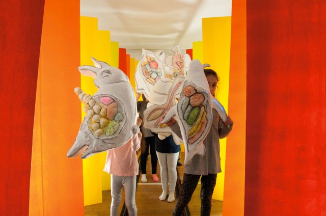 Au CAPC, l’artiste projette le visiteur dans l’univers dur et froid d’une ferme agricole où sont cultivées, à l’échelle industrielle, des créatures hybrides pour le moins étranges. Mi-humaines, mi-végétales, les sculptures qui peuplent la Nef du musée – régimes de bananes dont sortent des bras ou des jambes, pendu-cacaoyer, Monstera deliciosa ou autre plante luxuriante menaçante, yucca-androgyne, gnome-cabosse – fascinent autant qu’elles étonnent. Réalisées en polystyrène puis recouvertes de résine, elles affirment leur artificialité et interrogent les valeurs sur lesquelles a été fondée la culture « éclairée » en exposant les abus commis dans l’ombre de Linné.
