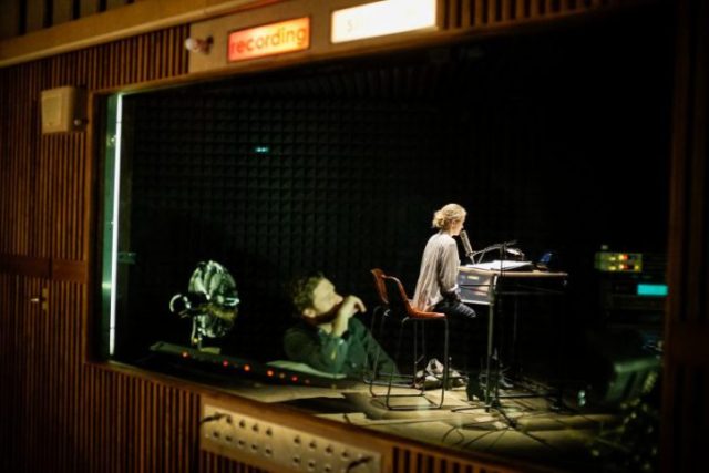 Rendre un essai à la scène est un pari risqué que remporte l’immense Ostermeier en une production formellement bien différente des précédentes. Au plateau, un studio d’enregistrement et de mixage, à l’avant-scène se dresse une table d’enregistrement sur laquelle une actrice, incarnée par Nina Hoss, lit le texte de Didier Eribon pour prêter sa voix à un documentaire utilisant l’oeuvre Retour à Reims, au fur et à mesure de sa lecture est projeté au lointain sur une immense toile blanche de cinéma les images supports d’une sorte de journal en image, essai video, en préparation tel l’écran de contrôle que l’actrice aperçoit en donnant sa voix. Ce documentaire fictif offre des images tournées réellement avec Eribon rentrant à Reims, à l’instar de son essai autobiographique, et alternent avec des scènes réelles issues d’images tournées par l’équipe de la Schaubuhne, la mère d’Eribon regardant des photos ou celles d’archives, ou extraites de documentaires. Peu à peu la jeune femme chargée de donner vie à la voix off par là-même à la narration, à la tragédie, interrompt le documentaire pour proposer une réflexion plus personnelle, interroger le cinéaste, incarné par Bush Moukarzel, sur ses choix d’images, de coupes de textes et commence à s’approprier de façon introspective cette réflexion sur la domination et la violence exercée. Le choix de Manchester pour y jouer les premières représentation n’y est sans doute pas innocent , lorsque l’on sait que Manchester fut autrefois l’une des villes sinistrée économiquement mais aussi frappée d’attentats récents et moins récents avec celui de l’IRA il y a vingt ans de cela.