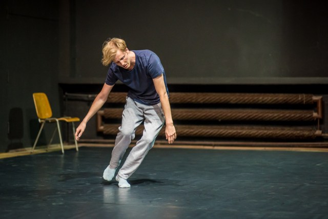 Il ne s’agit pas d’abandonner la verticalité, ce que l’homme ne peut pas, mais de la questionner, l’interroger, la fragiliser. Dans « Je(u) », un performeur très fragile est exposé devant nous. Parce qu’il lâche l’une des propriétés essentielles de l’être humain, la verticalité, il change son regard sur l’espace.
