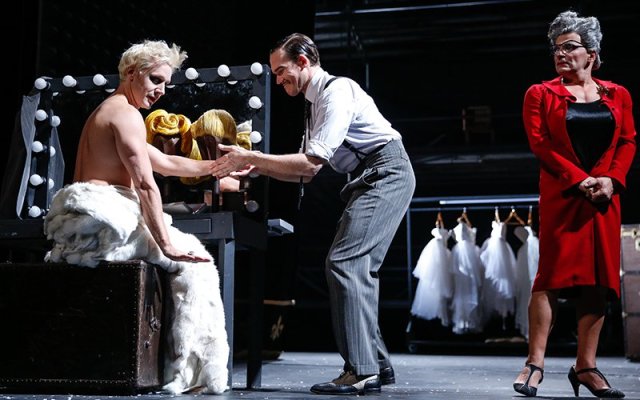 Sur le plateau de la Grande salle Vitez du TnBA qui sert de cadre à « L’Homosexuel ou la difficulté de s’exprimer », les blocs d’une banquise en gradins vont être chevauchés à la hussarde par les protagonistes en « dé-lire » d’identités, exilés là dans une Sibérie tout autant transitoire où, ont été déportées pour cause de changements de sexe réalisés au Maroc, Madre et Irina, sa « fille », ainsi que Mme Garbo opérée elle aussi tout en ayant conservé son sexe d’homme et déportée là pour avoir épousé un officier révolutionnaire. Les énergies sexuelles de ces trois créatures nées de transmutations vont exploser les limites du réalisme consensuel pour envahir de manière résolument grand guignolesque l’espace dramatique.