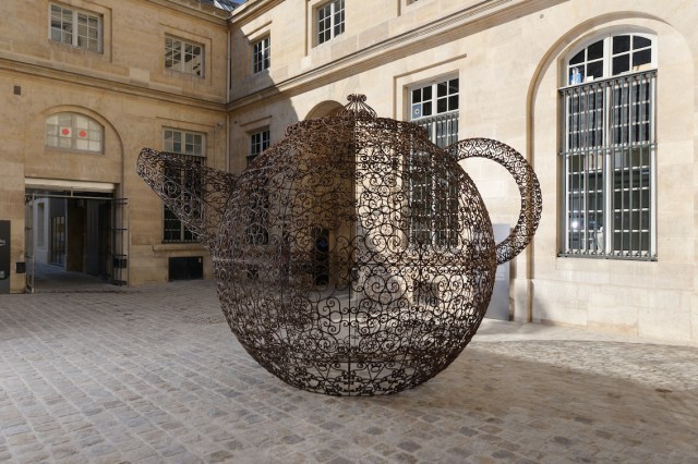 2- Vue de l’exposition, extérieur (Cour de la méridienne). Joana Vasconcelos, La Théière, 2010.