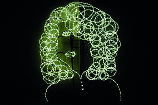 À Landerneau, une structure complexe et labyrinthique supporte les portraits, s’élevant au-dessus de ceux qui souhaitent y entrer et expérimenter ces entrelacs lumineux décrivant les pensées et les idées d’enfants de tous âges et de nombreuses nationalités.