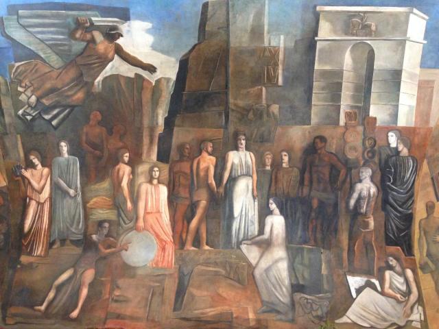 1 et 2 – Fresque de Mario Sironi vue du haut du Grand Amphithéâtre de La Sapienza (photos R. El Fani)