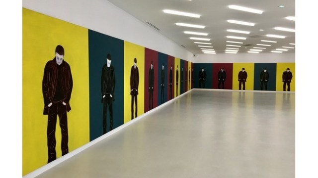 Mais le clou de cette nouvelle exposition est sans nul doute la présentation des œuvres Djamel Tatah, Franco- Algérien né à Saint-Chamand et dont les œuvres illuminent les murs du Musée… Sa technique captive le regard puisqu’il mêle la peinture à l’huile avec la cire qui donne à la fois un coté profond et brillant à son travail. Confrontées aux oeuvres de Richard Serra, Cy Twonbly ou Robert Barry, on perçoit tout de suite la dimension poétique et universelle de ce travail. Sur des fonds monochromes, sont tracés des personnages, simples, presque stylisés qui peuvent, comme on le voit au dernier étage de la collection Lambert, être assimilés aux sérigraphies d’artistes comme Warhol, reproduites à l’infini, placées côte à côte comme une immense forêts d’hommes clonés… c’est vertigineux. Ces polyptyques rappellent à la fois les grands peintres classiques et ceux de l’art minimal qui sont tout autour comme autant de supports qui apportent aux œuvres de Djamel Tatah un contexte qui permet d’errer tout en rêvant dans un Musée dont, décidemment, tout semble nouveau…