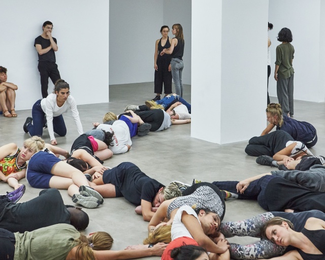 Image: “Alexandra Pirici: Aggregate,” 2017. Exhibition view: Neuer Berliner Kunstverein, Berlin. Photo: Joseph Devitt Tremblay. Courtesy the artist