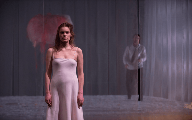Le problème avec Daniel Jeanneteau – et ce, sans aucunement remettre en cause son désir de vouloir créer un théâtre non réaliste qui représente les protagonistes plus comme des fantômes errant dans la mémoire de l’homme blessé – c’est que sa scénographie statique fleure le procédé… Que les voiles viennent apporter le recouvrement des faits réels par le travail du souvenir les filtrant, ceci est indéniable. Mais on aurait souhaité, « en supplément d’âme », que ces voiles, il les mette à mal, qu’il les torture dans « tous les sens », afin que ces pans de tissu participent à la dramaturgie comme matière vivante et qu’ils ne soient pas ressentis comme simple décor encombrant. En les laissant ces voiles immuablement immobiles – ou presque – le metteur en scène nous prive en effet du grain de la chair des comédiens sans pour autant nous convaincre du bienfondé du dispositif, choisi comme révélateur de la temporalité différée de l’action reconstruite dans le souvenir.
