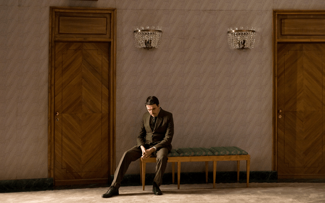 En effet en trois mouvements d’une grande intensité – d’abord les mots poignants que Karski a confiés à Claude Lanzmann pour Shoah et qu’Arthur Nauzyciel reproduit minutieusement sur le plateau ; puis une vidéo lancinante du plan du Ghetto de Varsovie projetée sur grand écran et servant de fond au récit historique porté jusqu’à nous par la voix off de Marthe Keller ; enfin le soliloque de Karski interprété par Laurent Poitrenaux au bord de l’apocalypse dans la somptueuse antichambre de l’Opéra de Varsovie – nous revivons le drame d’une humanité (la nôtre, celle dont nous sommes les héritiers et les nouveaux représentants) devenue irrésistiblement sourde sous l’effet de petits arrangements nécessaires, de commodités pragmatiques, et d’insensibilités face au sort réservé naguère aux Juifs d’Europe.
