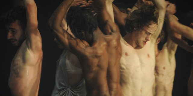 Un premier tableau exhibe les danseurs se jetant les uns sur les autres, gestes tourmentés, désarticulés, accompagnés de hurlements inarticulés. Avec une avidité carnassière, ils s’arrachent leurs vêtements, les mettent en lambeaux, corps que l’on dépèce à l’envi, ils s’étranglent, se retrouvent à demi-nus, plaqués au sol, haletants. Retour au calme, les duos se rassemblent pour faire chœur et la horde sauvage semble – un instant – avoir trouvé son point d’équilibre dans une communion collective apaisée. Les mouvements de la symphonie mahlérienne épousent les pauses et accès frénétiques des danseurs qui, imperceptiblement, jouent avec eux pour soutenir leurs improvisations spontanées. Des chants africains rituels viennent s’inviter en contrepoint des adagios de Mahler, créant ainsi une symbiose musicale organique mettant en abyme la synthèse des corps réunis dans la même liturgie païenne.