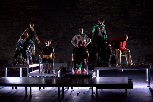Sur l’immense plateau de la Cour, réduit pour l’occasion à un quadrilatère borduré d’un côté des chaises qui accueilleront la troupe disparate et délurée d’Israel Galván, quelques praticables posés en son centre, et c’est tout. Le décor de « La Fiesta » est dressé : ici, on va évoquer un élément central de la tradition andalouse, cette fête populaire brassant l’ensemble des composantes sociales et culturelles de la terre des ancêtres du chorégraphe, gitans et non-gitans -« payos » et adeptes du Flamenco et de la « juerga », cette fiesta gitane familiale, réel creuset du vénérable Cante flamenco.
