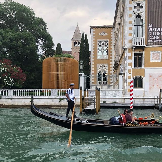 Quant à The Gilded Cage, cette oeuvre maximale tient paradoxalement d’un minimalisme épuré. Commandée par le Public Art Fund de New York, elle y fut exposée d’octobre 2017 à février dernier à l’entrée sud-est de Central Park. La voici maintenant élégamment vautrée sur la pelouse de ce joli palais vénitien que n’aurait pas désavoué Canaletto (et peut-être d’ailleurs l’a t’il peint un jour, chi lo se ?). Une oeuvre à la Weiwei, bien couillue mais toujours esthétique -certains diraient un peu trop, emblématique symbole d’une militance sans cesse réitérée qui anime chacune des oeuvres de l’artiste. Politique un jour, politique toujours.