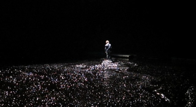 Les danses qu’il a inventées restent. Ce qu’on retient aussi ce sont les espaces dans lesquels il va les inscrire. On se souvient de Skull*cult avec sa combinaison et son casque de moto où il endossait un personnage qui fascina. On garde en mémoire les écrans d’un autre solo Loin/Fare et entre ces deux pièces, tout un monde s’est évanoui et un univers a jailli. On se rappelle de Sfumato, présenté à Lyon lors de la précédente Biennale, avec ce piano sous une pluie battante. Déjà l’eau ; eau qu’on retrouve dans cette nouvelle création de la Biennale de danse de Lyon : Franchir la nuit.