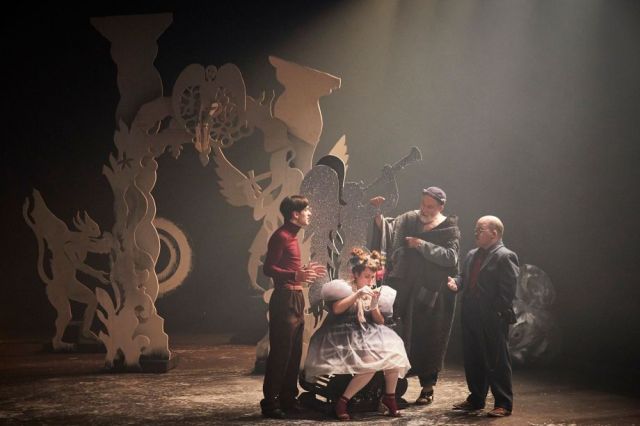 Sur la chorégraphie d’Agnieszka Riskiewicz accompagnant les mouvements des comédiens pour qu’ils puissent librement se livrer sur le plateau, la musique enregistrée de Julien Perraudeau dont les cuivres aux sonorités burlesques percutent avec justesse nos tympans, les lumières de Mana Gautier baignant l’atmosphère onirique pour la rendre sensible à nos yeux, sans oublier les costumes faramineux cousus main par Clair Raison, les acteurs de Catalyse -Tristan Cantin, Manon Carpentier, Guillaume Drouadaine, Christian Lizet, Christelle Podeur, Jean-Claude Pouliquen et Sylvain Robic – excellent en tous points. Leurs noms méritent d’avoir « droit de cité », au même titre que ceux qui ont initié cette œuvre collective (rajoutons pour être complet le nom du dramaturge, Pierre Chevallier).
