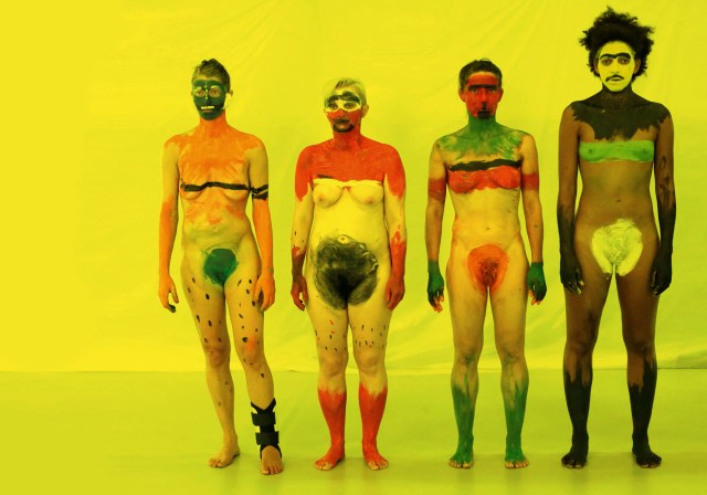 Là le patriarcat relâche sa garde… Le ver est désormais dans le fruit… Dans cet espace blanc où étaient enfermées les interprètes, les murs commencent à moisir, le salpêtre apparaît, et l’espace dur intraversable va se ramollir sous l’effet du rituel de transformations. Les murs vont devenir mous, suinter, pour n’être plus que du papier fragile. L’empereur est nu et tout l’édifice s’écroule.