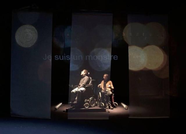 Celui qui est ici pointé comme « monstre » – Astérion le Minotaure joué par Denis Guesneau, acteur handicapé en fauteuil, au jeu saisissant de vérité « humaine » – ne serait-il que le produit d’une fabrication sociale visant à blinder la porte de l’altérité, la rendant étanche aux questionnements liés à un ordre normatif veillant à séparer arbitrairement le bon grain de l’ivraie supposée ? Pour plagier la célèbre interrogation beauvoirienne, naît-on « monstre »… ou le devient-on sous le regard d’une société avide de classifications exclusives et se barricadant derrière le pare-feu de la notion de handicap pour mieux discriminer celui ou celle dont l’impertinence est d’échapper à la norme en vigueur et, ce faisant, l’épingler sous un étiquetage compatissant de nature à l’exclure de l’Humanité ordinaire ?