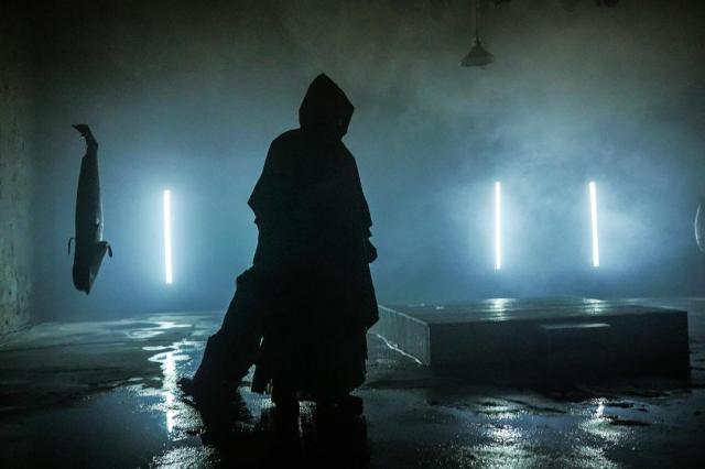 Au travers de sa scénographie épurée, Jean-Luc Terrade prend soin de recréer la fantasmagorie propre au peintre norvégien Lars Hertevig exalté par la langue poétique de Jon Fosse dans les deux romans qu’il lui a consacrés. Au centre du plateau de l’Atelier des Marches cerné par des murs de béton brut, une estrade flottant entre des nuées de brumes humides comme un rocher émergeant des brouillards des fjords. Semblable au peintre qui connut l’infortune de l’asile et mourut dans le dénuement, la non-héroïne de ce drame à ciel encombré, trouve un refuge dérisoire à l’intérieur du périmètre de son « petit coin » soumis à un éclairage vif contrastant avec ses déambulations encapuchonnées dans la froidure des brouillards humides. Là, en compagnie des poissons au regard fixe qui pendent des cintres, elle pourra peut-être trouver le repos après que, morcelés comme peut l’être la mémoire mise à l’épreuve du chaos originel, les souvenirs se sont précipités dans un flux seulement interrompu par les nécessités des viscères déversant elles aussi leur trop plein. Sans trop savoir s’ils sont réels ou réinventés, ces « appels » qui la traversent de part en part – mais quelle importance il y a là, le passé échappant à toute tentative d’élucidation ne pouvant qu’être recomposé – mènent jusqu’à nulle part…si ce n’est à nous-même.
