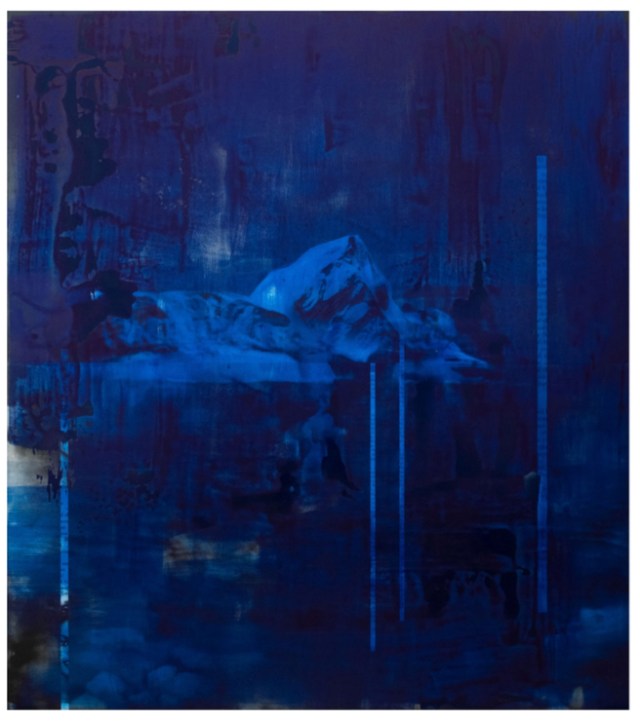 For more than 30 years, Simpson’s powerful works have entangled viewers in an equivocal web of meaning, drawing upon techniques of collage through the use of found materials, often culled from the pages of vintage Jet and Ebony magazines. In ‘Darkening,’ Simpson continues to thread dichotomies of figuration and abstraction with vast and enthralling tableaux that subsume spliced photos and fragmented text, abstracted beyond comprehension. Equally arresting and poetic, the paintings engage viewers with layers of paradox, capturing the mystifying allure of an arctic landscape in inky washes of blacks, grays, and startling blues.