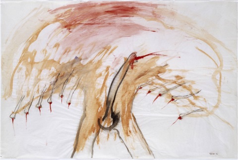 Spero a commencé sa carrière en tant que peintre figuratif à Paris dans les années 1950; pour elle, les choix de matériel, de forme et de sujet étaient toujours politiques. Dans les années 1960, confrontée aux atrocités de la guerre du Vietnam, elle conclut que la peinture était devenue «trop conventionnelle, trop d’établissement». Abandonnant la toile pour papier, The War Series (1966–70) de Spero exprimait son indignation devant la représentation de bombes sexualisées. personnifié la brutalité sexiste du conflit. À partir de 1966, elle travaille principalement sur le papier – en épinglant ses fragiles compositions directement au mur – et l’histoire des femmes devient peu à peu, mais résolument, le sujet central de son art.