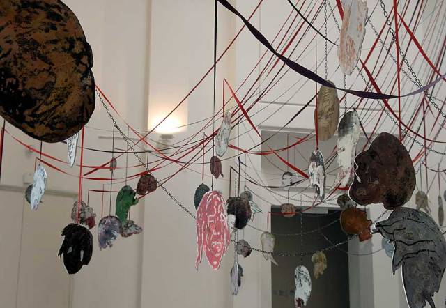 Nancy Spero: Paper Mirror passe en revue l’ensemble de la carrière de Spero, y compris ses peintures noires des années 1950; la série de guerre des années 1960; les œuvres Artaud des années 1970; la série d’expéditions et d’heures des nuits de 1974; ainsi que de nombreuses œuvres des années 1980, 1990 et 2000. La présentation de l’exposition sur le MoMA PS1 comprendra l’œuvre monumentale de l’artiste Notes in Time on Women (1979-1981), une frise de 200 pieds de la collection du Museum of Modern Art, exposée pour la première fois depuis plus de une décennie. La grande installation Maypole: Take No Prisoners est également présentée.(2007), dernière œuvre majeure achevée par l’artiste avant sa mort, réalisée à l’origine pour la Biennale de Venise. Installé dans la galerie Duplex du premier étage du MoMA PS1, l’œuvre consiste en un poteau vertical en acier de 20 pieds à partir duquel des images de têtes décapitées sont suspendues par des rubans et des chaînes en métal. Créé pendant la guerre en Irak, mais dérivé des dessins antérieurs de Spero ayant répondu à la guerre du Vietnam, Maypole provoque une enquête sur la nature cyclique de l’histoire, de la guerre et de ses victimes. En outre, l’exposition comprend une sélection de documentaires d’Irene Sosa, contenant des images originales de Spero au travail.