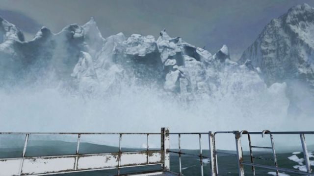 L’idée d’une période menaçante d’incertitude et de dangers latents – dont la préoccupation écologique vient au premier rang- permet à l’installation « Rising » de Marina Abramović, datant de 2017, de s’inscrire idéalement dans les enjeux développés par cette 58e Biennale. Abramović montre dans les espaces de la galerie du Dorsoduro un travail multi-média utilisant la vidéo ainsi que la réalité virtuelle de manière particulièrement pertinente afin de traiter de la fonte des glaciers et de l’élévation probable et inquiétante du niveau de la mer dans les prochaines décennies, dont Venise hélas risque fort d’être parmi les premières impactées en Méditerranée.