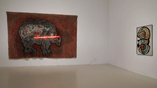 La pratique de Merz, liée à l’Arte Povera, intègre différentes caractéristiques essentielles que le critique d’art allemand Germano Celant a identifiées avec ce mouvement: outre son opposition à la société postindustrielle du consumérisme, nous trouvons une utilisation consciente de matériaux organiques tels que l’argile, les branches, la cire et le charbon. De l’application de ces matériaux découlent certaines des associations récurrentes dans l’imagerie pré-moderne de l’artiste, telles que le feu, les éclairs et les flèches ; des figures aux significations mythiques et géologiques – l’igloo, la table, la spirale, le fleuve; ou des animaux ancestraux comme le rhinocéros et le crocodile. Ces motifs, associés à l’idée de nomade, s’inspirent de la poétique de l’artiste, revendiquant des modes de vie conformes à la nature qui résistent aux schémas prédateurs de la modernité capitaliste.