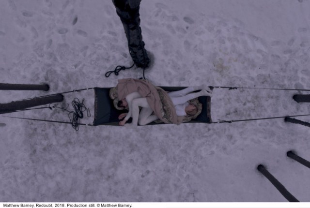 Le film 2018 de Barney Redoubt se déroule dans une chasse au loup dans les montagnes escarpées de Sawtooth, en Idaho, s’inscrivant dans la longue préoccupation de l’artiste quant au paysage en tant que cadre et sujet. Redoubt revisite l’ancien mythe de Diane, déesse de la chasse, et d’Actéon, un chasseur qui lui fait injure, comme cadre narratif. Dans Redoubt, un graveur, interprété par Barney, crée une série de dessins en plein air sur des plaques de cuivre alors qu’il suit Diana et ses assistantes. Un électroplasteur installé dans un laboratoire éloigné les soumet à un processus chimique qui transforme les dessins du graveur: chaque plaque est immergée dans une solution de galvanoplastie, ce qui provoque la formation de croissance de cuivre sur les lignes gravées. Ses actions, axées sur le rituel, transforment les gravures en objets talismaniques, les reliant au travail de Barney de dessin, sculpture et performance.
