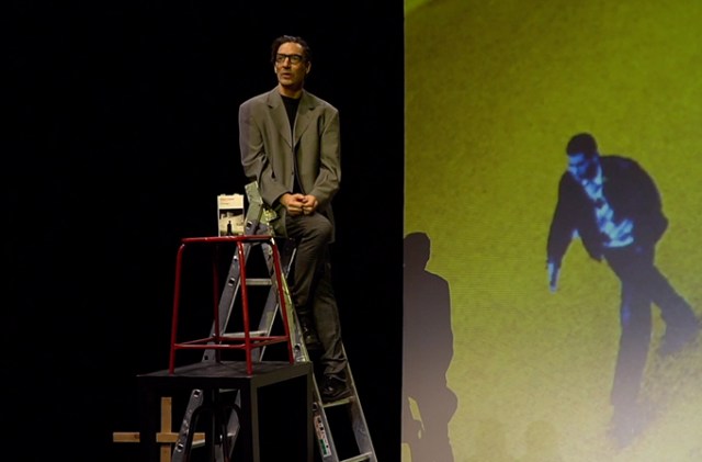 Dans son livre, Kamel Daoud imagine un frère à l’Arabe anonyme du roman de Camus. Des deux comédiens, l’un joue le rôle d’Haroun (Mounir Margoum), le frère de la victime, dont il nous apprend le nom: Moussa. Le second (Thierry Raynaud), semble incarner la France à lui seul, une France pieds-noirs et post-coloniale à la fois, qui se voudrait modèle de fraternité….tout en conservant certaines prérogatives. Les deux comédiens font preuve d’une remarquable intensité où l’humour reste bien présent malgré la gravité du propos.